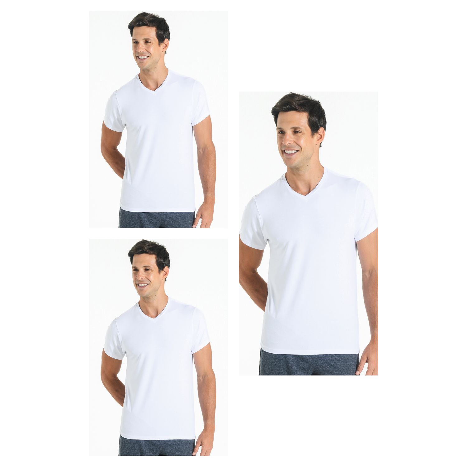 Kit 3 Camisetas Viscolycra Gola V Branco