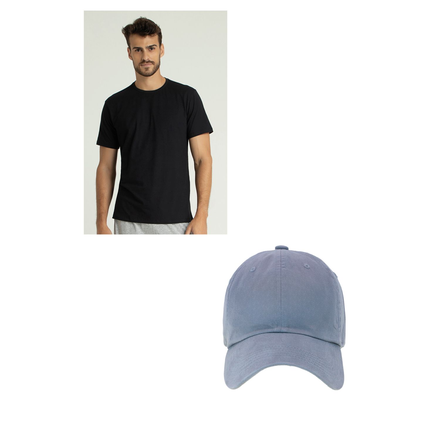 Kit Camiseta e Boné Liso em Sarja 100% Algodão Preto